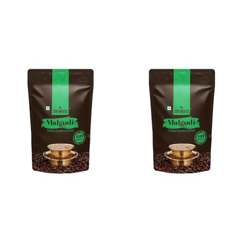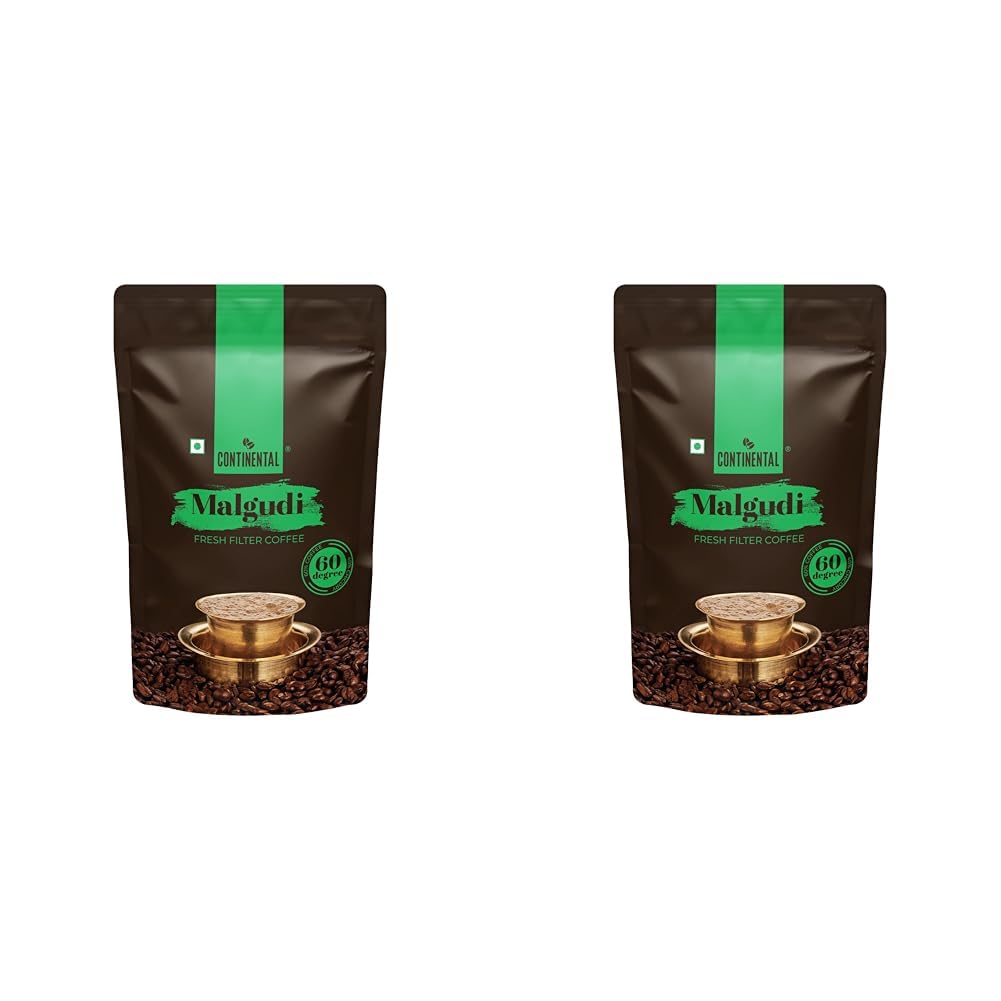 Continental Malgudi Filter Coffee 500gm Pouch | (60% Coffee - 40% Chicory) | Traditional South Indian Filter Coffee Powder | Freshly Roasted Ground Coffee (Pack of 2)