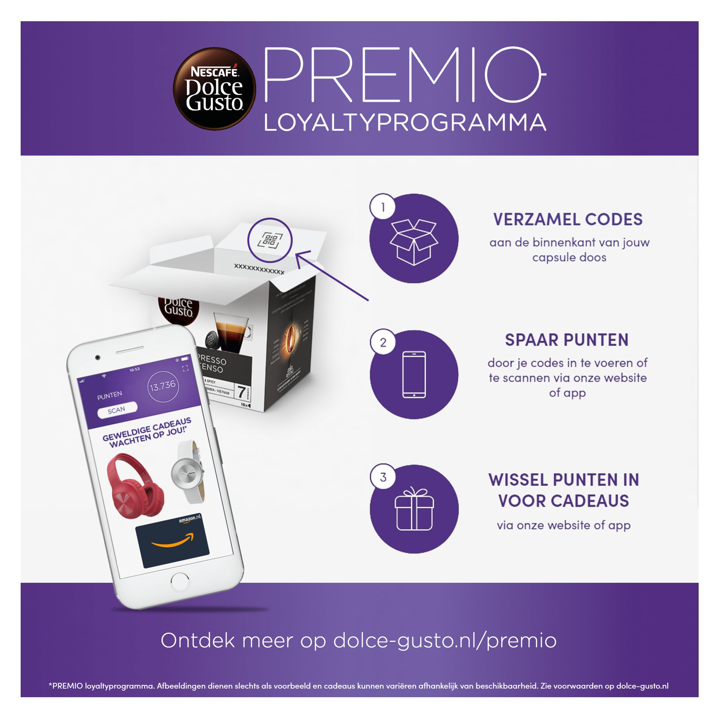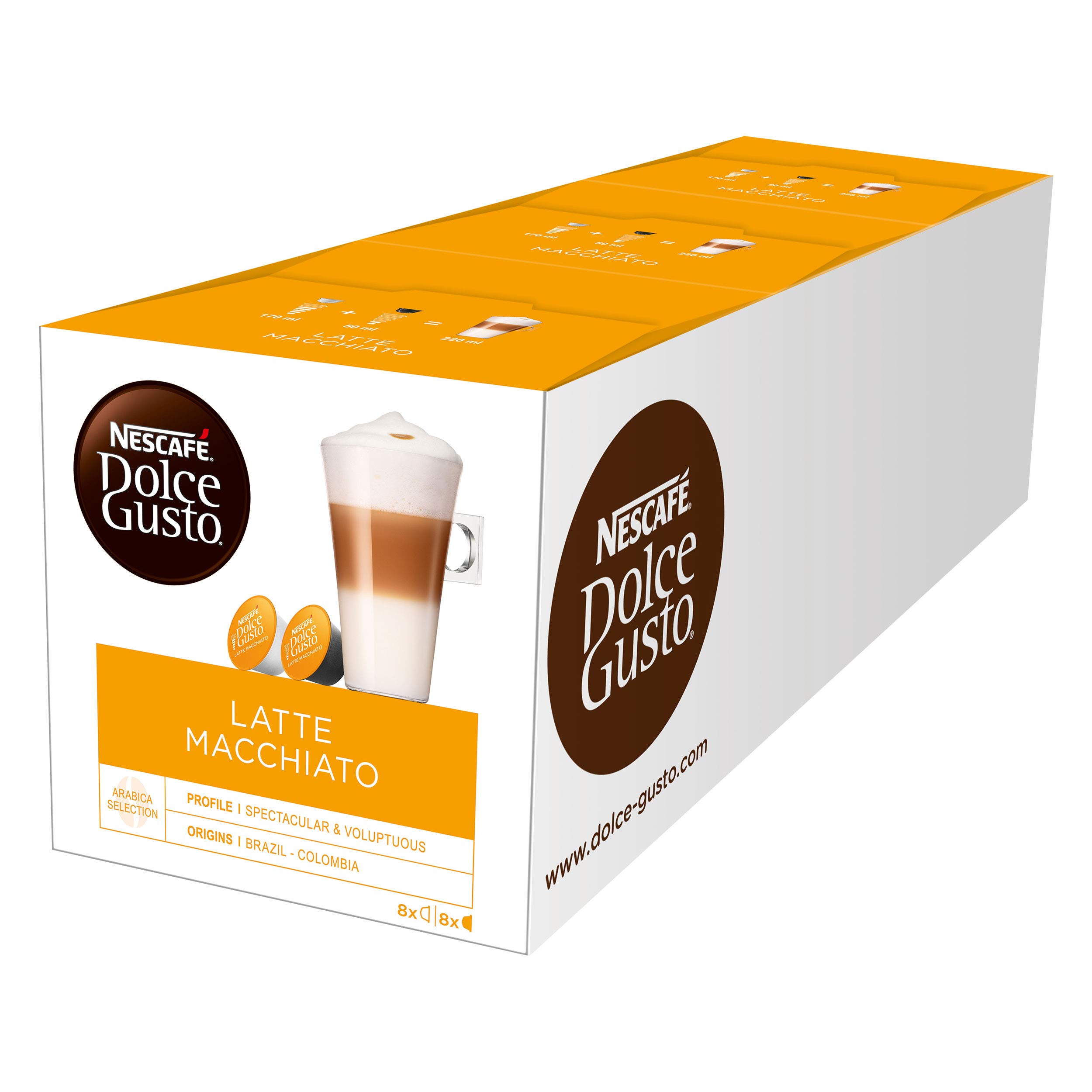 The Dolce Gusto latte macchiato is steamed frothy milk slightly sweetened with a layer of smooth full-bodied espresso. Effectively an upside-down caffè latte âlatte macchiato' literally means stained milk. When you've filled your latte glass with hot frothy milk add a cheeky shot of espresso and you'll soon see the âmacchia' - a delicious dot of crema sitting atop the froth. Note: On the product MAN is Manufacturer Date and BBF is the Best Before Date. Ingredients Whole Milk Powder Sugar (10%) Emulsifier (Soya Lecithin) Roast and Ground Coffee
