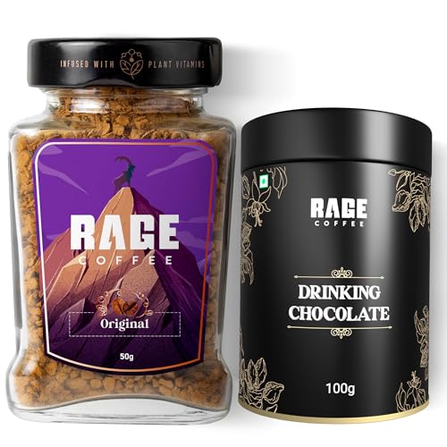Rage Coffee Combo - Instant Coffee (50 gms) And Hot Chocolate Drink Powder Mix (100 gms) | Original Coffee Blend | Make Great Coffee Mocha | Made In India