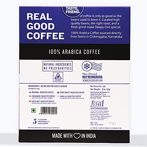LOCALLY SOURCED 100% ARABICA COFFEE Sleepy Owl uses premium quality Grade-A Arabica beans to make its Cold Brew Packs. These are grown above 5300ft in Chikmagalur Karnataka. We directly source from farms ensuring that we bring you the best cup of coffee f