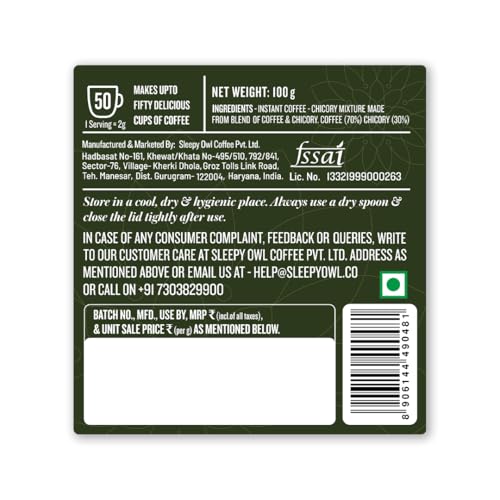 Sleepy Owl Filter Kaapi Premium Instant Coffee | 100 Gram x 2 | Authentic Robusta & Chicory Blend | Makes 100 Cups | Powder | Can