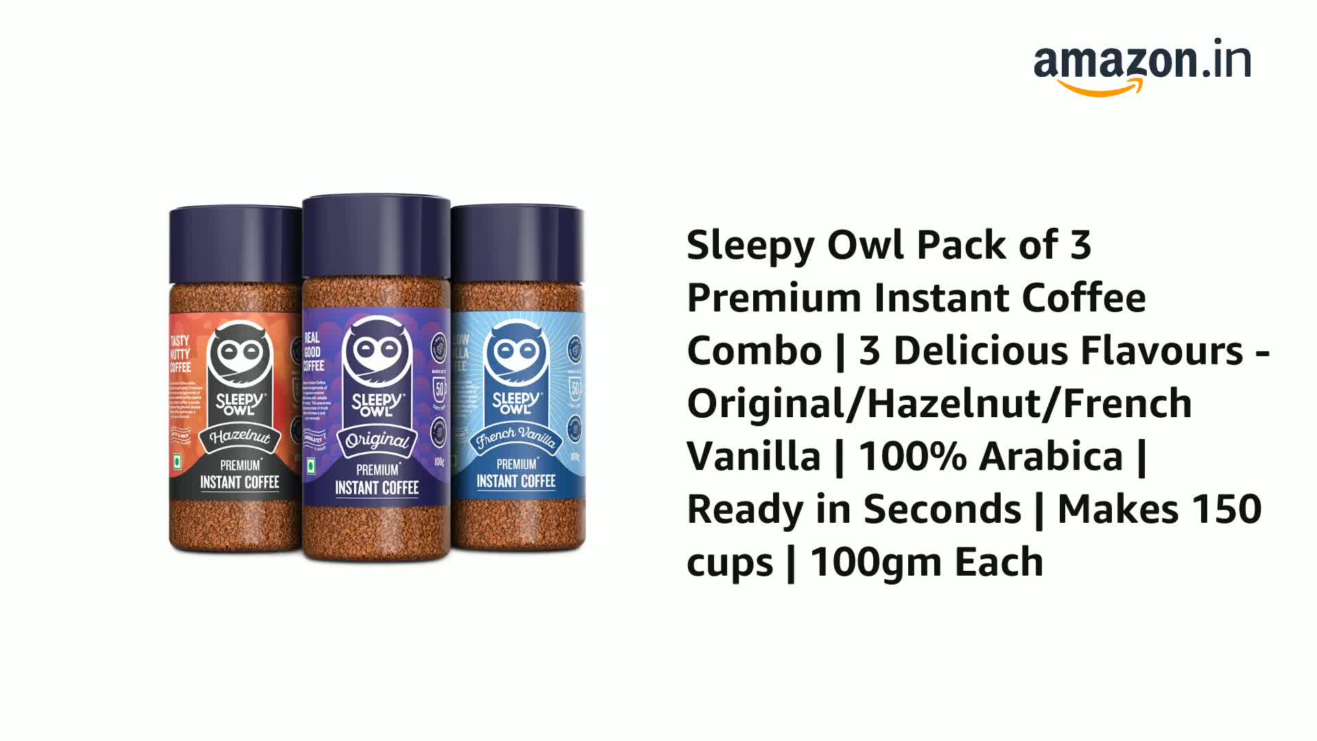 Sleepy Owl Instant Coffee Powder Pack of 3 | Premium Combo - Original Hazelnut French Vanilla | 100% Arabica Beans | Delicious Assorted Flavours | Ready in Seconds | Makes 150 cups | 100gm Each