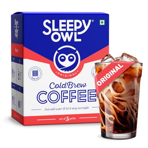 Sleepy Owl Original Cold Brew Coffee Bags | Set of 5 Packs - Makes 15 Cups | Easy 3 Step Overnight Brew - No Equipment Needed | Medium Roast | 100% Arabica | Directly Sourced From Chikmagalur