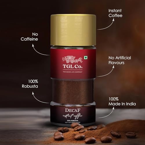 TGL Co. Decaf Premium Instant Coffee (100G) | 100% Robusta | Caffeine-Free | No Artificial Flavors | Strong & Classic Taste | Hot & Cold Coffee