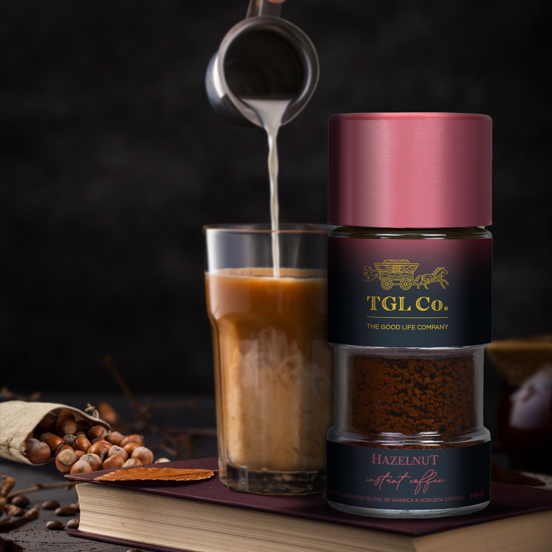The instant love affair of coffee with hazelnut. The Good Life Company (TGL Co.) brings you flavored instant coffees that you will fall in love with. Decadent and smooth with nutty notes. The coffee is a Euphoric blend of Arabica and Robusta with the natural flavors of Hazelnut. The first sip and you're in love. Enjoy the good life. Package Content: 50g Hazelnut flavored instant coffee powder. TGL Co. Hazelnut Flavoured Instant Coffee -50 gm | blend of Arabica & Robusta Coffee Beans | Granular Coffee with No Added Sugar| Hazelnut Flavoured Coffee Powder |Hot or Cold Coffee| Premium Coffee