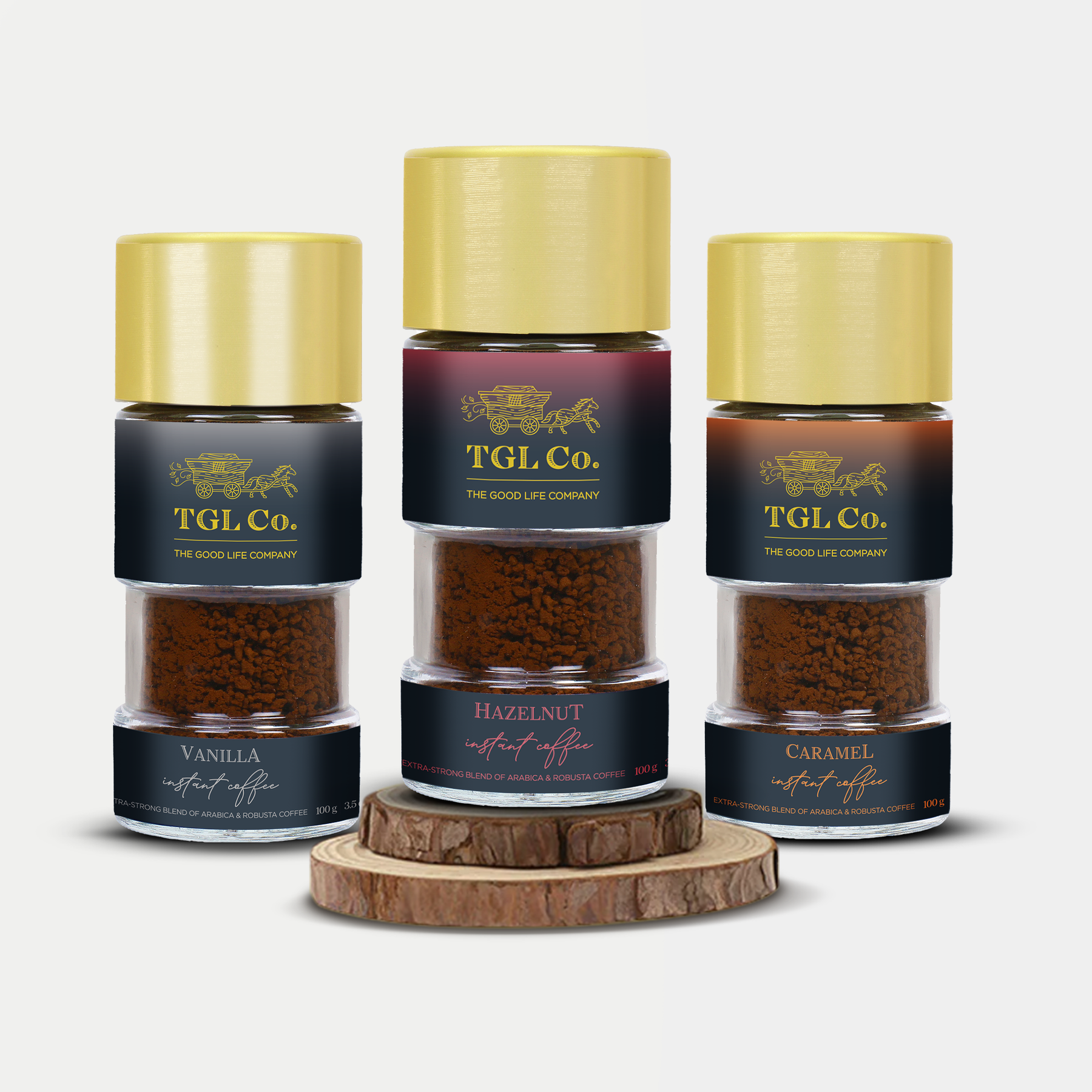 Aroma -Hazelnut: A rich aroma of top-quality coffee highlighted by the earthy, sweet undertones of hazelnut.Caramel: A rich aroma of top-quality coffee complemented by the creamy, decadent notes of caramel.Vanilla: A rich aroma of top-quality coffee balanced with the fresh, classic scent of vanilla.Tasting Notes -Hazelnut: A smooth consistency and a subtle interwoven flavour of hazelnut with the aromatic notes of coffee.Caramel: The sweet and smooth notes of vanilla mixed with the familiar bitter-sweet flavours of coffee.Vanilla: The sweet and smooth notes of vanilla mixed with the familiar bitter-sweet flavours of coffee.Caffeine - ModerateBest Consumed - Hot or iced, any time of the day!More information: All three flavours are versatile and can be enjoyed hot or iced! They work well with many coffee-based beverages and can be paired with a variety of ingredients.