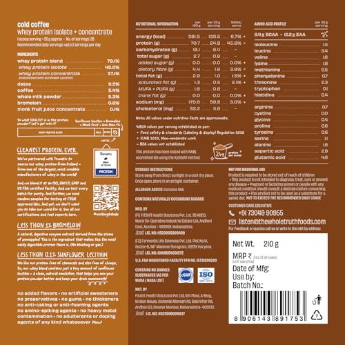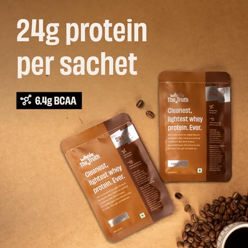 The Whole Truth Whey Protein Isolate+Concentrate | Cold Coffee 210g (Pack of 6) | 24g Protein/Sachet 6.4g BCAA | 100% Authentic & No Adulteration | Clean Light & Easy to Digest | Sample & Travel Pack