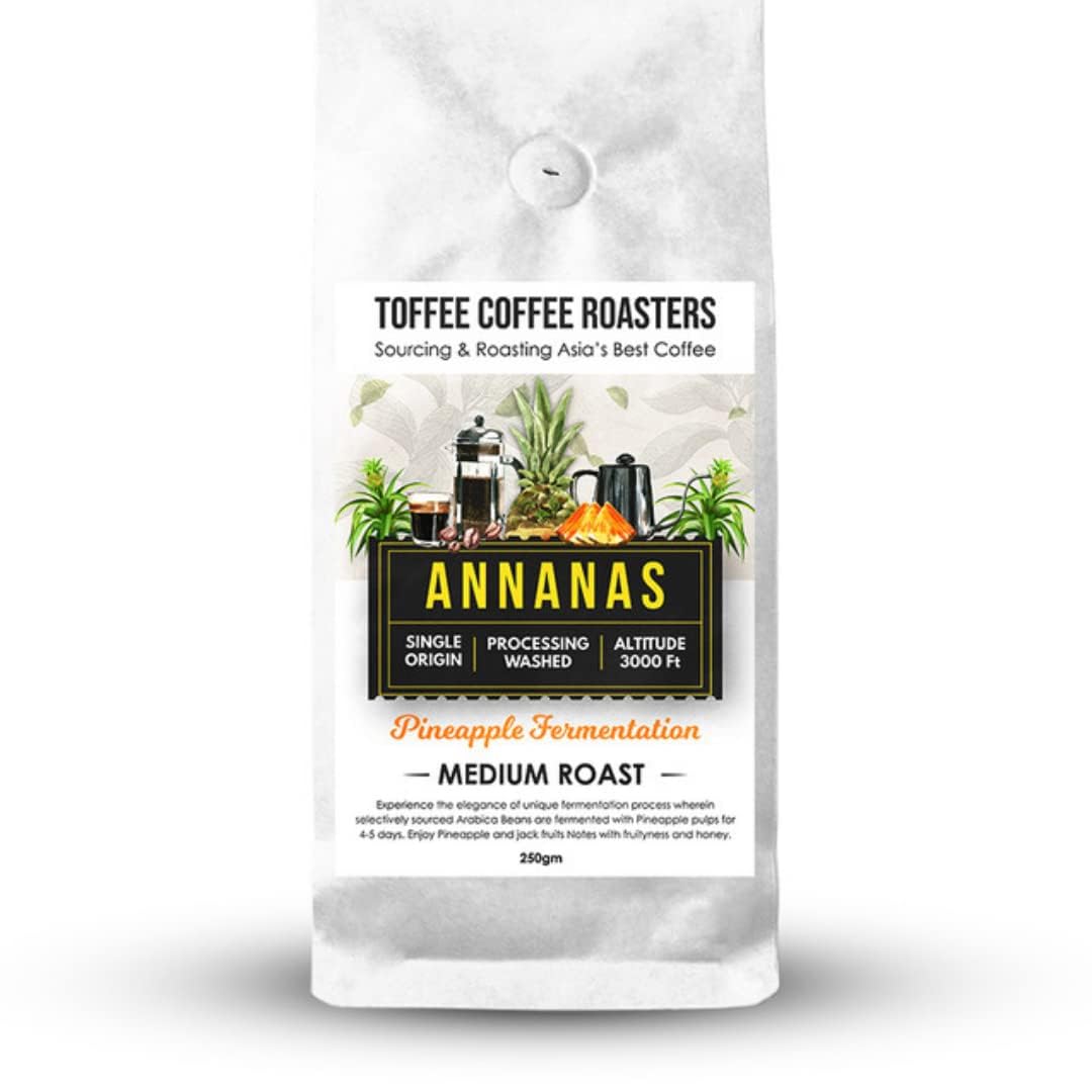 Toffee Coffee Roasters | Annanas: PineApple Fermented Coffee | As Seen On Shark Tank | 100% Arabica | Medium Roast | Coffee Notes: Fruity and Pine Apple (French Press 250gm)