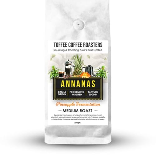 Toffee Coffee Roasters | Annanas: PineApple Fermented Coffee | As Seen On Shark Tank | Arabica | Medium Roast | Grounded Coffee Notes: Fruity and Pine Apple (Whole Beans 250gm)