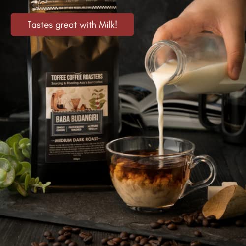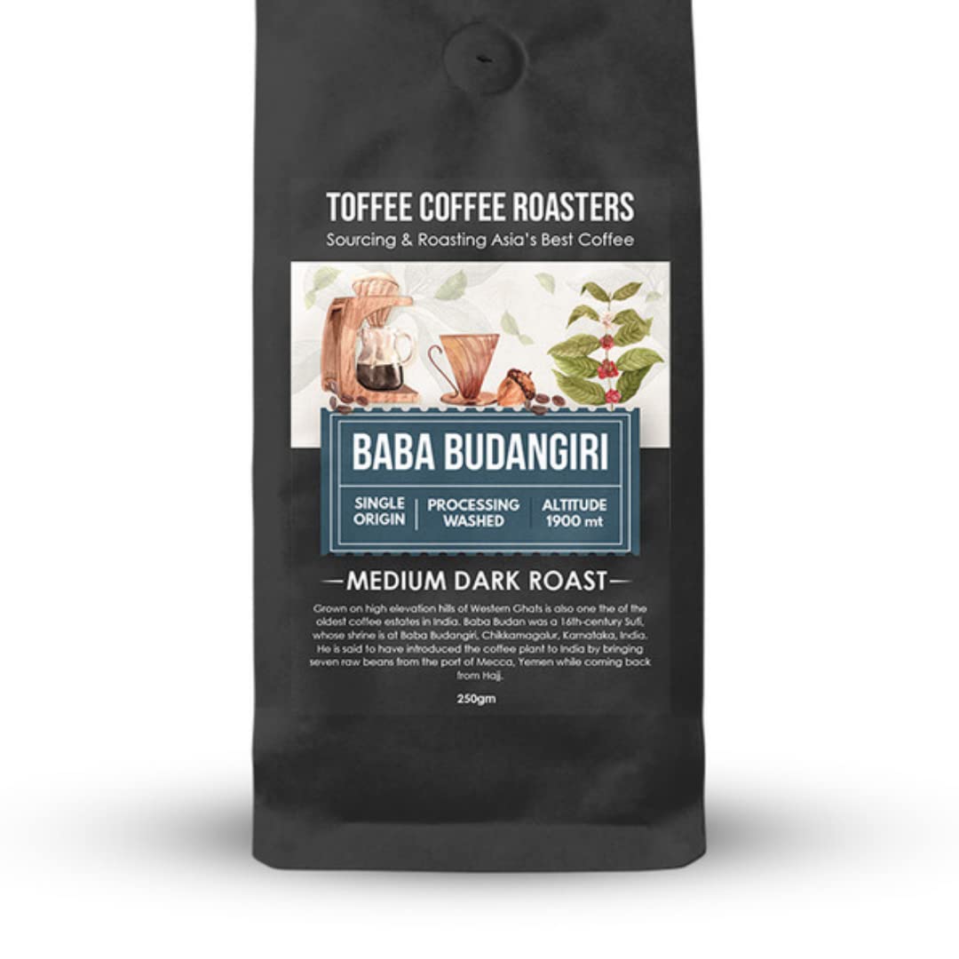 Toffee Coffee Roasters Baba Budangiri Coffee 250 gm | As Seen On Shark Tank | 100% Arabica Medium Dark Roast | Grind: South Indian Filter | Coffee Notes: Toasted Nuts Earthy and Dark Chocolate