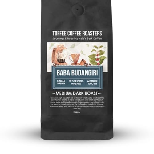 Toffee Coffee Roasters Baba Budangiri Coffee 500 gm | As Seen On Shark Tank | 100% Arabica Medium Dark Roast | Grind: Kalita Wave | Coffee Notes: Toasted Nuts Earthy and Dark Chocolate