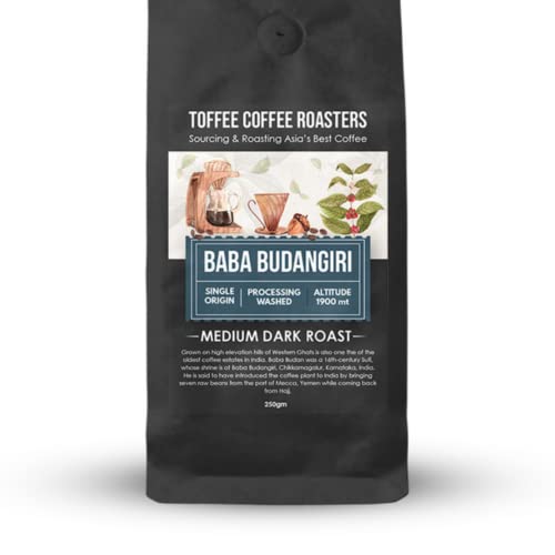 Toffee Coffee Roasters | Baba Budangiri Coffee | Medium Dark Roast Coffee | Size: 250 gm | Freshly Roasted Coffee | Grind: Cold Brew | Coffee Notes: Toasted Nuts Earthy and Dark Chocolate Notes