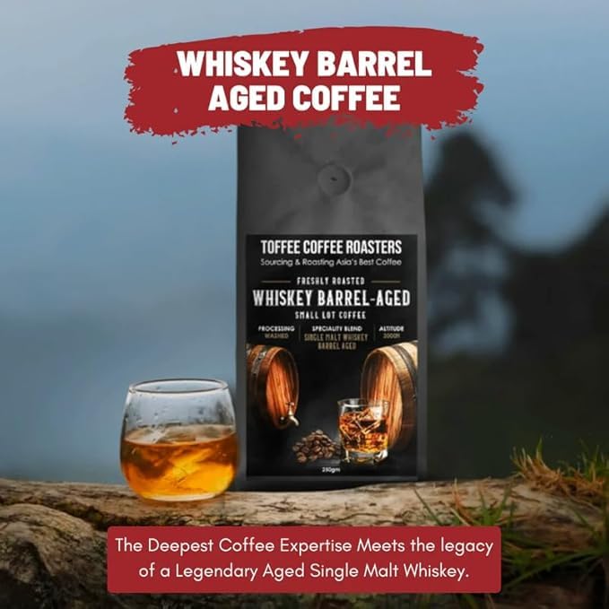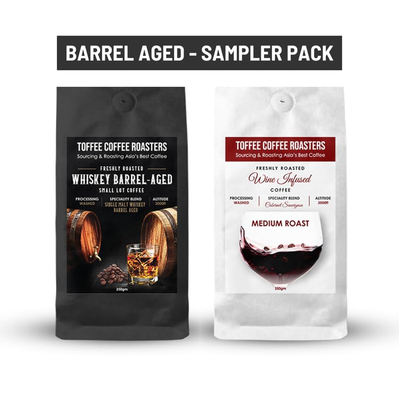 Elevate your coffee experience with this exclusive combo pack featuring two unique luxurious coffee blends — one aged in Single Malt Whiskey barrels and the wine infused with rich wine flavors. Both blends are meticulously crafted to offer a distinctive and indulgent sensory experience.Whether you’re treating yourself or looking for a special gift this combo pack is a choice for coffee lovers who appreciate exceptional distinctive flavors.