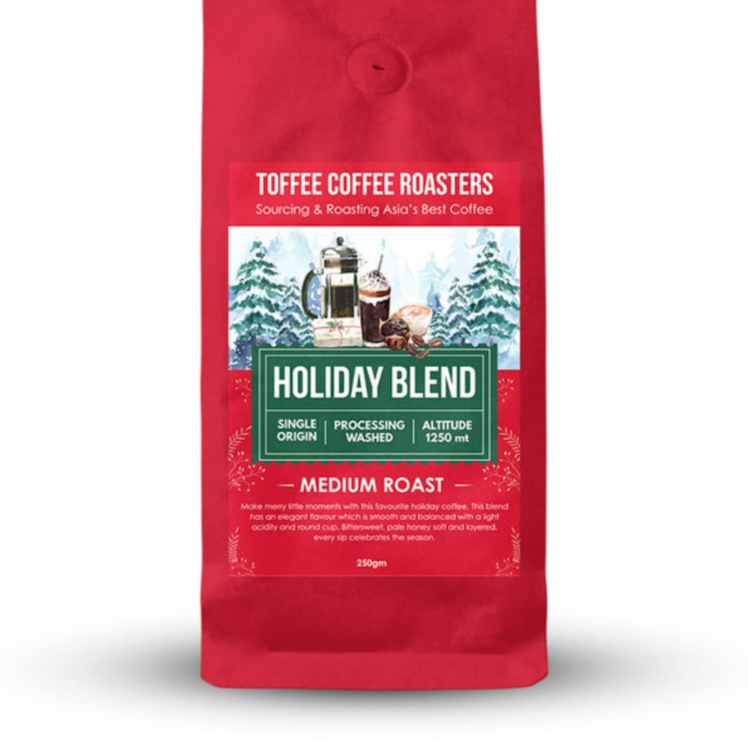 Toffee Coffee Roasters | Holiday Blend Coffee | Arabica Freshly Medium Roast | Grounded Coffee Notes: Bittersweet Pale Honey Sift and Layered | Grind: Hario V60| Freshly Roasted | 1000 gm