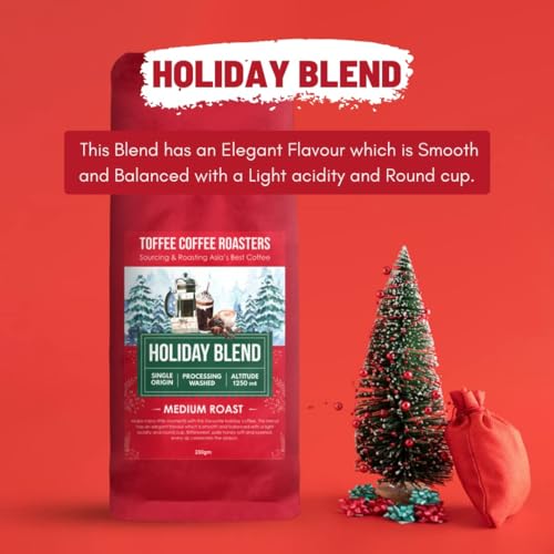 Toffee Coffee Roasters | Holiday Blend Coffee | Speciality Blend| Arabica | Medium Roast | Grounded Coffee Notes: Bittersweet Pale Honey Sift & Layered | Grind: Chemex| Freshly Roasted | 1000 gm