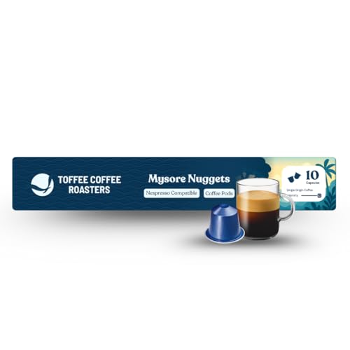 Toffee Coffee Roasters |Mysore Nuggets Coffee Pods | Nespresso Compatible |AAA Speciality Grade| Notes: Nutty & Dark Chocolaty | Roast: Dark| Pack of 2 (20 Capsules) | 110gms