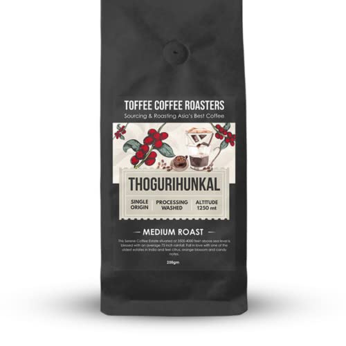 Toffee Coffee Roasters | Thogarihunkal| As Seen On Shark Tank | Single Origin Coffee | Arabica | Medium Roast | Coffee Notes: Citrus and Orange Blossom (Aeropress 250)