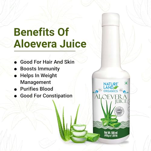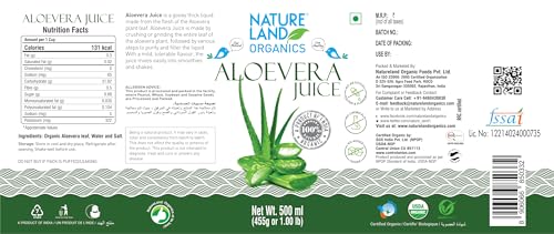 Natureland's aloevera juice is in its purest form extracted from the organically grown aloevera plants to boost its nutritive and medicinal properties and give you the right product to keep your mind body and soul always at its best. Aloevera juice is good source of vitamins such as vitamin C vitamin b12 and vitamin e and minerals such as iron copper and germanium it aids in improved digestion blood circulation anti-inflammation. Hair re growth and skin rejuvenation boosts general immune system aids in absorption of nutrients and neutralizing toxic and bad elements eye wrinkle remover treating acne and pimples removes dandruff regenerates cells.