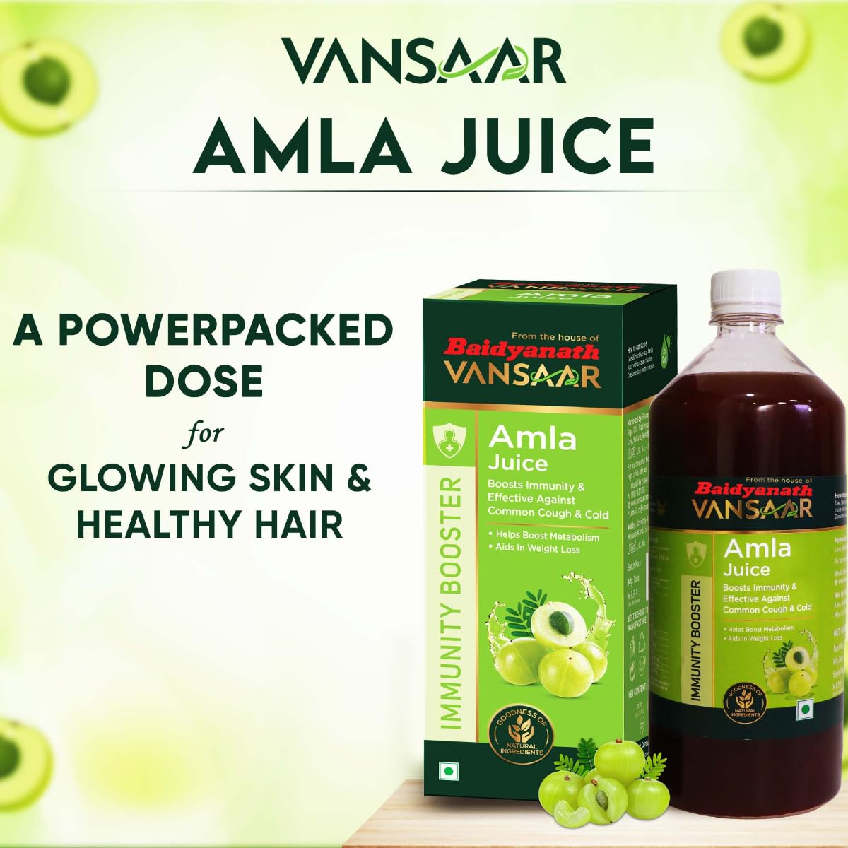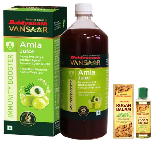 Baidyanath Rogan Badam (Almond) Oil | 100% Pure Cold Pressed & Sweet Almond Oil | For Glowing Skin & Hair Growth - 50 MLIdentified as the best oil with myriad health benefits Baidyanath Vansaar Rogan Badam oil is made from high grade Californian Sweet Almonds. It is an excellent source of Vitamin E magnesium selenium and omega-3 fatty acids which are retained using the cold-pressed extraction method. Rogan Badam an ayurvedic hair oil acts as a natural emollient for hair to help nourish the hair follicles strengthen them and gives you healthy lustrous hair. This almond oil has wide skin benefits and acts as a natural face serum evens out skin tone and in turn reduces skin pigmentation. Topical application of this oil under eyes also reduces puffiness & dark circles.Baidyanath Vansaar Amla Juice | Strong & Healthy Hair | Detox Juice for Weight Loss | Organic & Natural Juice Made With Cold Pressed Amla | No Added Sugar - 1LBaidyanath Amla Juice has been extracted from Indian Gooseberry or Amla. It can also be used as an anti aging formula