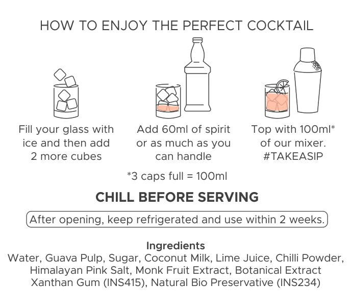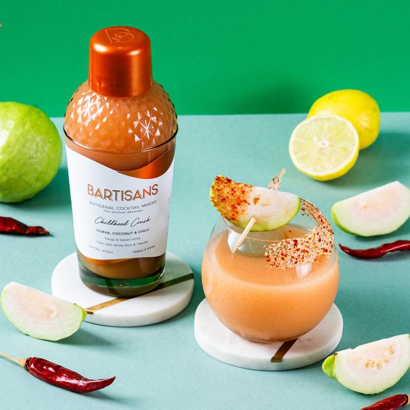 This is inspired by the rekdi wale Peru and masala treats we've all loved as children! Just like your crush you could never figure out what was in that masala but we've tried. Bringing you our most awaited flavor with a Bartisans twist: this mixer elevates the classic guava-chili combination with a dash of coconut for a delightfully sweet and spicy drink!