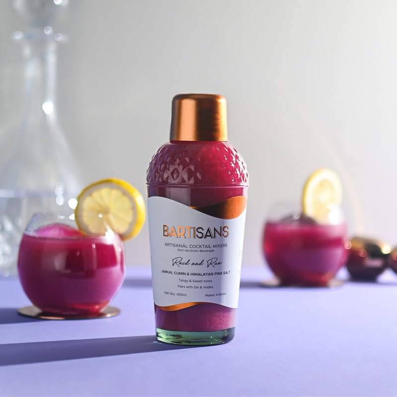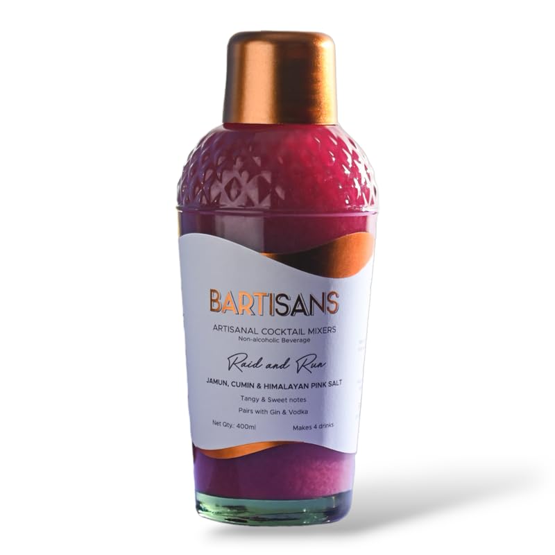 Hurling stones at a jamun tree or violently shaking the branch as the jamuns fall from the tree is a classic 90s thing isnt it? Some shatter into pools of purple and some remain round and plump the perfect pick! And just when you have a handful the guard comes running to shoo you away stealing is forbidden after all! This mixer is an ode to that sweet and sour laughter those purple stained mouths and the pure sense of achievement and victory! When you sip this cocktail first theres a burst of sweet and sour flavor and then it settles with the savory taste of the jeera lingering tempting you to take another sip.