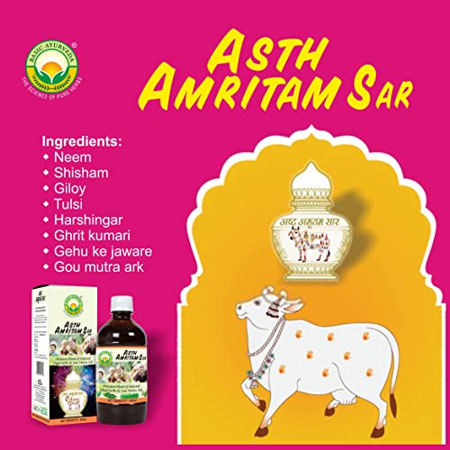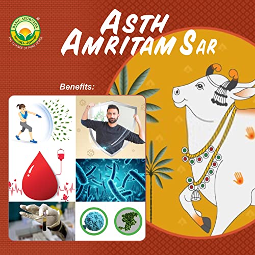 • Basic Ayurveda Asth Amritam Sar ras is a premium blend of selected vital herbs containing Neem Shisham Giloy Tulsi Harshingar Ghrit kumari Gehu ke jaware and Gou mutra ark.