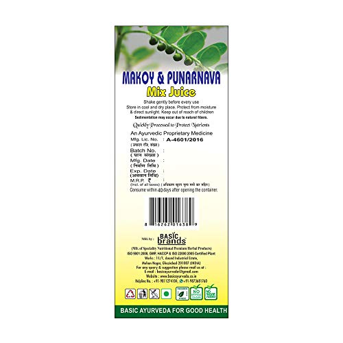 Basic Ayurveda Makoy & Punarnava Mix Juice 450 Ml |Kidney Health & Detox |