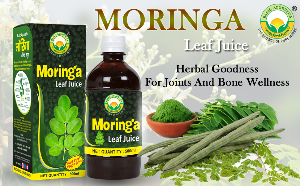 BASIC AYURVEDA Moringa Leaf Juice (Sounjana Sahjan) 500 Ml - Pure & Natural Plant-Based Product | One Solution To Many Health Problems | No Added Chemicals Or Preservatives | First Press Vigin Juice | Pleasent Natural Taste