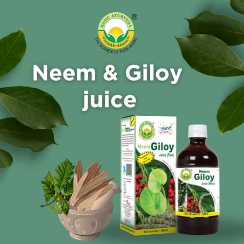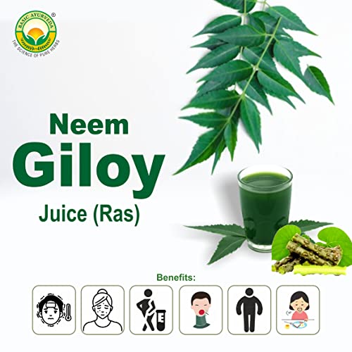 • Basic Ayurveda's Neem Giloy Juice (Ras) herbal classical ayurvedic formulation is accurately composed that contains fresh neem & giloy which is helpful for all types of skin-related problems immunity supporters and general weakness.