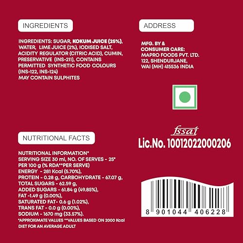 Mapro Kokum Crush 1L Gluten Free Pack of 1 Multicolour