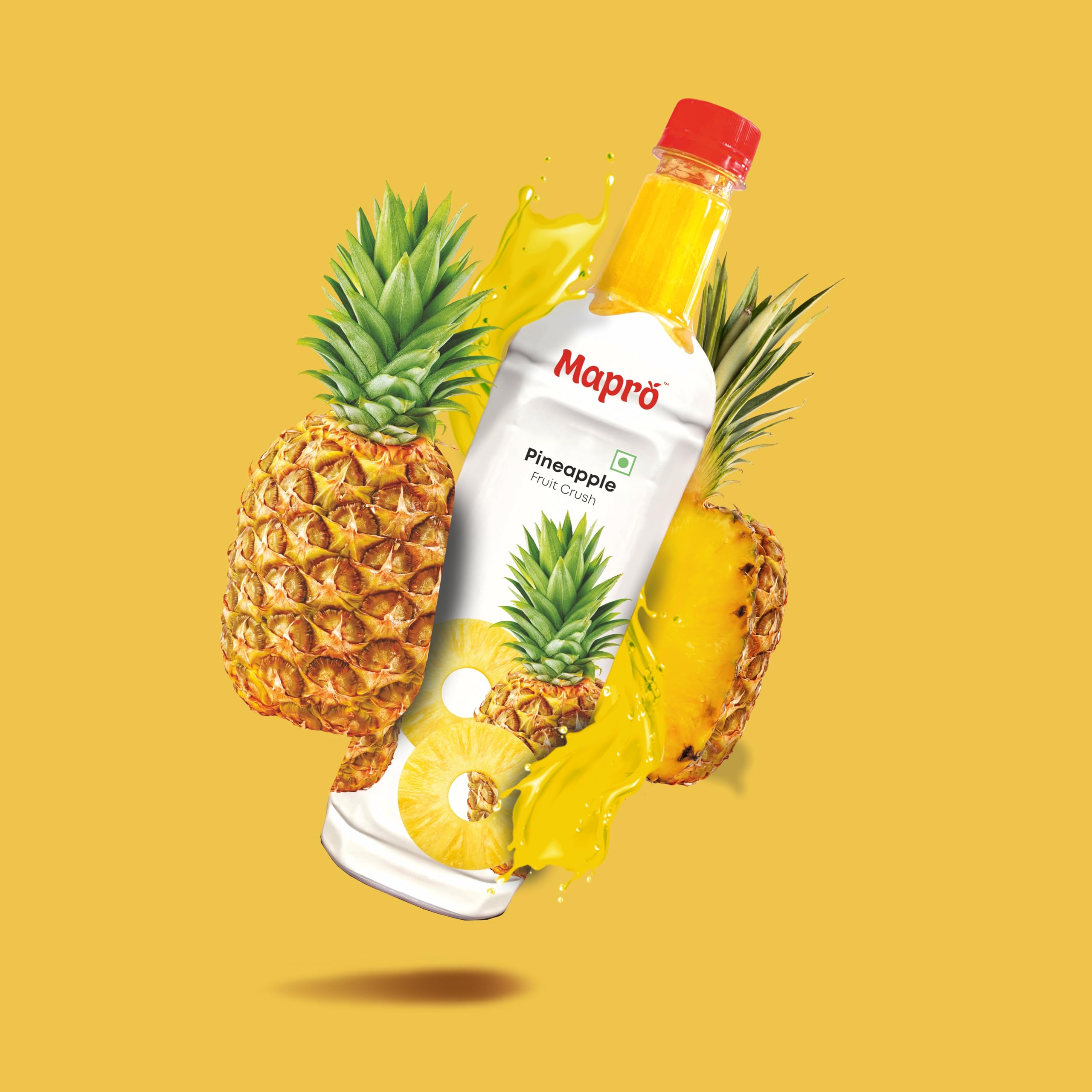 Originally from Latin America the pineapple a pulpy tropical fruit is rich in manganese and vitamin C. It is mostly preserved in sugar syrup as slices and used in jams chutneys smoothies puddings cakes and salads. For a tangy rejuvenating drink blend one part Mapro pineapple crush with five parts water.