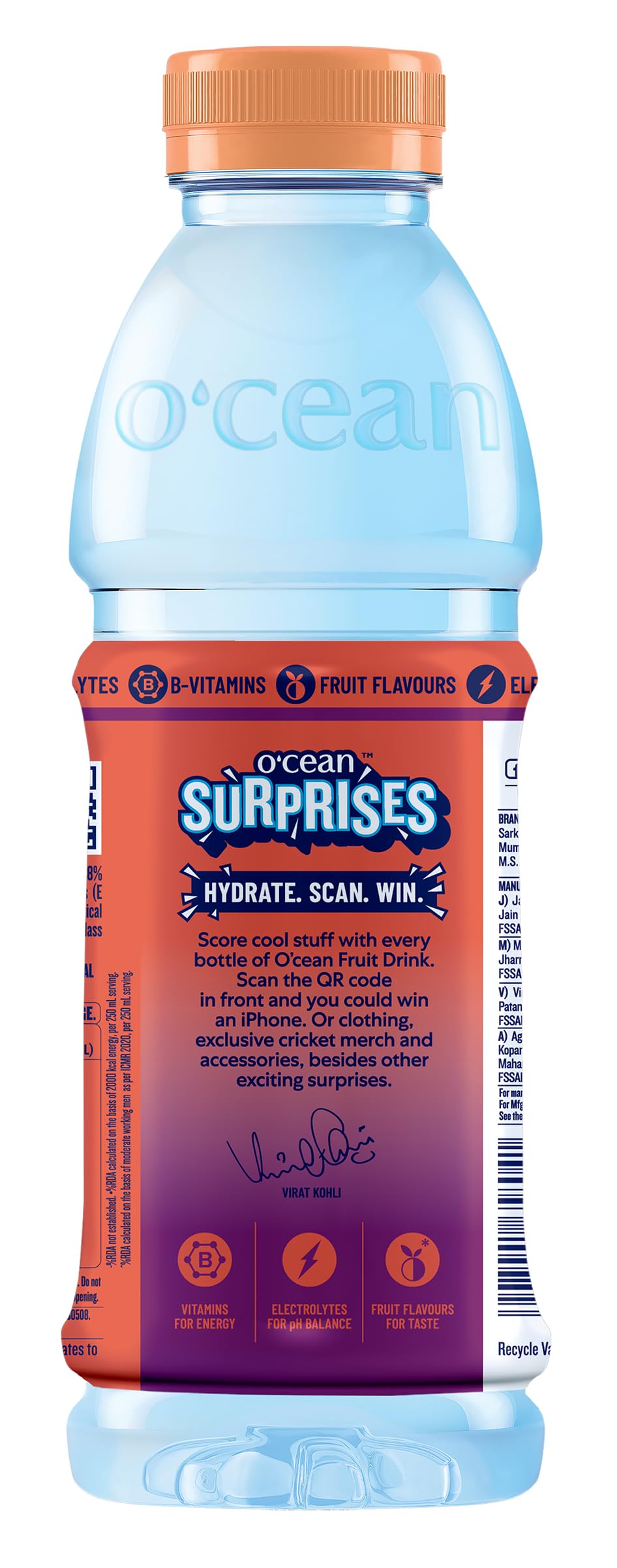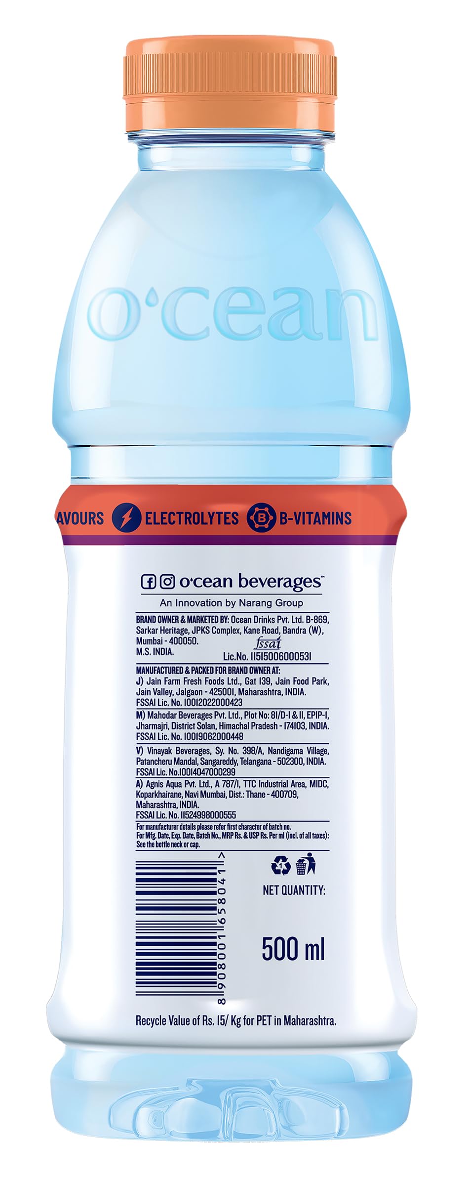 Ocean fruit drink - Peach & Passion is the optimal blend of water fruit juice glucose electrolytes and vitamins. it is that rare combination of a drink that's good for you and tastes great too. the glucose and vitamins help release energy the refreshing fruit flavour makes you drink more liquids than plain water while the other great ingredients re hydrate and renew your body to help you sail through your day. ingredients (as per label) : water reconstituted Peach & Passion juice from concentrate (11%) sugar glucose minerals ( e 329 e 508) acidity regulator (e 330 e 331) permitted class ii preservative (e 202) vitamins (b3 b5 & b7).