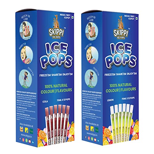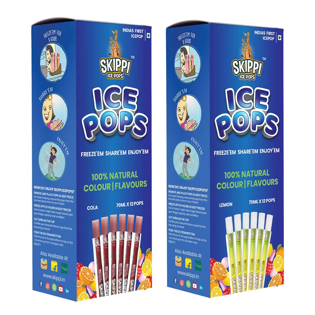 Skippi Ice Pops 100% Natural Freezer Pops Juice Bars Ice Pops - Cola & Lemon Flavors (12+12 Pops Boxes) - 12 Gm