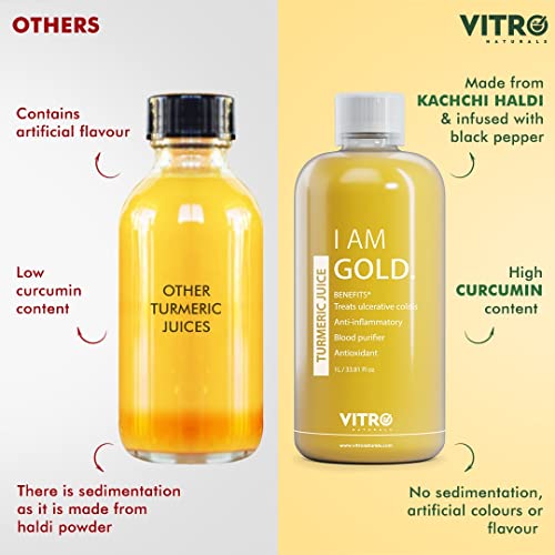 Vitro Turmeric Juice 1L | joint pain relief juice | muscle recovery juice | Raw Turmeric Juice with Curcumin | Anti-Inflammatory & Antioxidant | Supports Digestion Liver Brain and Skin Health | With Black Pepper