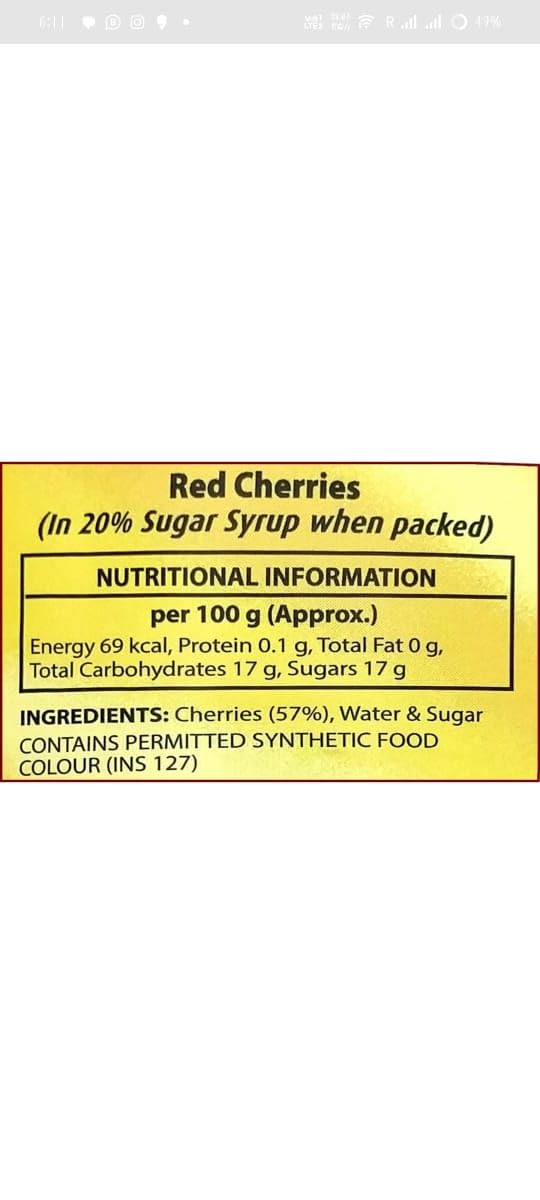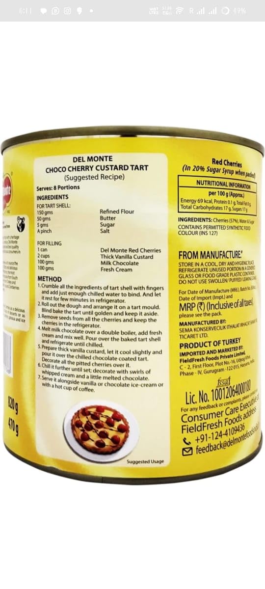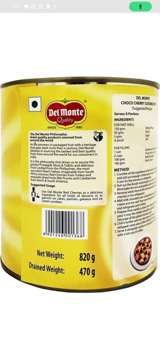 Del Monte Food Craft Canned Red Cherries 840 Grams
