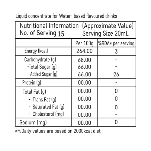 Sucrose Water Acidity Regulator (INS 330)Nature Identical Flavour (Grenadine) Food Colour (INS 122-150d) and Preservative (INS 211)