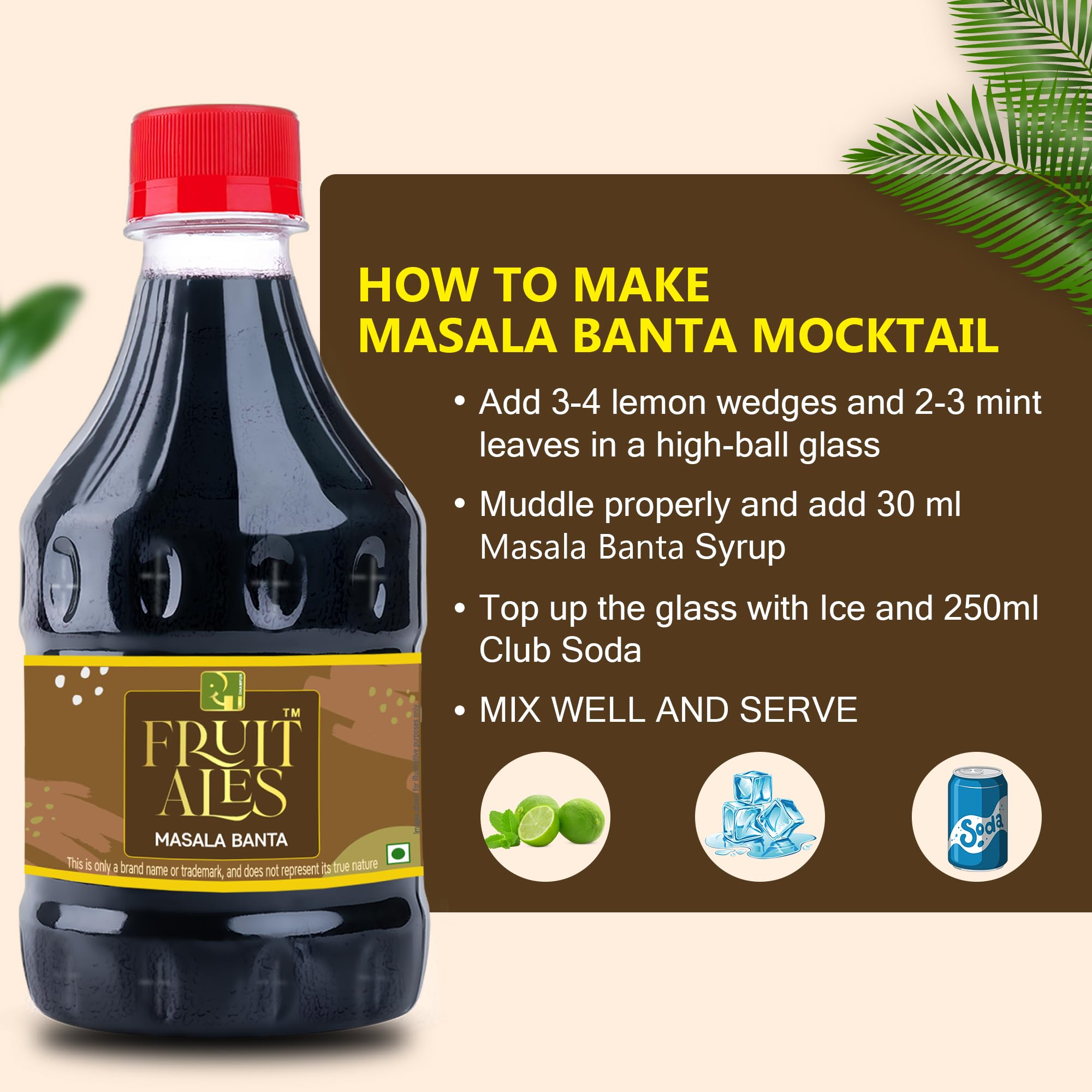 Dhampur Green's Jeera Masala Syrup adds that desi twist and that Indian punch to your drinks. Handcrafted using traditional grandma's recipes it not only makes a thirst-quenching refreshing drink but also a great digestive meal accompaniment to an Indian/ South Asian meal. Time to set up your own kala khatta gola counter' at your kid's next birthday party! Take a stroll down memory lane all the way to your childhood memories with Dhampur Green's classic Kalakhatta syrup. The sweet tart and spicy syrup is a perfect summer coolant and when doused over shaved ice it turns into an old- fashioned loved by everyone ice lolly the barf-ka-gola'. No need to worry about hygiene as now you don't need to go buy a kala khatta gola from the roadside vendor. you can just make one at home and entertain all your guests including those difficult-to-please' children! FRUITALES Masala Banta Syrup is a multipurpose syrup with a perfect balance of spicy citrusy and sweet flavours- all in one! Banta is the Indian street-style lemonade and a glass of this lemon-flavoured masala soda refreshes you instantly esp. on a hot summer day. Banta sellers can be seen dumping spoonful of a secret masala into individual glasses before filling them up with chilled soda and fresh lemon juice. FRUITALES Masala Banta Syrup has blended in all those flavours and given you the ready syrup that you can use with soda and crushed ice.