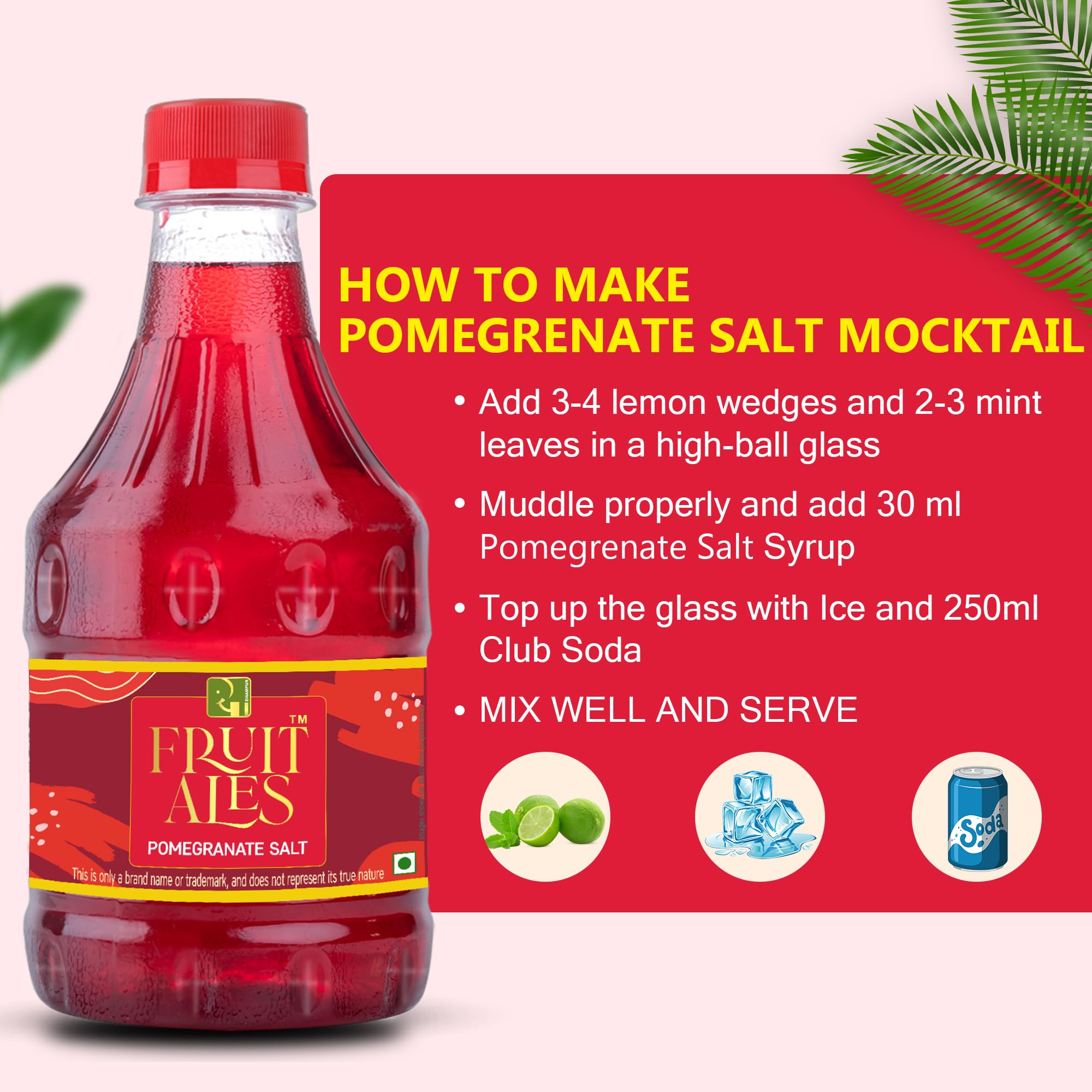 FRUITALES Shikanji Syrup is a versatile syrup with a perfect balance of citrusy flavours sweetness and spice. Mix it with water or club soda and add black salt (kala namak) or shikanji masala for that extra zest. It is formulated to hold up in heat and resist curdling in dairy products. It blends well into all mojitos smoothies sodas mocktails and teas- so you become a pro bartender right in the comforts of your home. Time to set up your own kala khatta gola counter' at your kid's next birthday party! Take a stroll down memory lane all the way to your childhood memories with Dhampur Green's classic Kalakhatta syrup. The sweet tart and spicy syrup is a perfect summer coolant and when doused over shaved ice it turns into an old- fashioned loved by everyone ice lolly the barf-ka-gola'. No need to worry about hygiene as now you don't need to go buy a kala khatta gola from the roadside vendor. you can just make one at home and entertain all your guests including those difficult-to-please' children! With its distinctly deep dark color and a sweet and sour flavour profile FRUITALES Pomegranate & Salt Syrup by Dhampur Green is a fruity syrup that blends well into smoothies sodas mocktails and teas. Make refreshing sodas mocktails cocktails shakes slushes & fruit punches and use as a topping on ice creams and fruit salads.