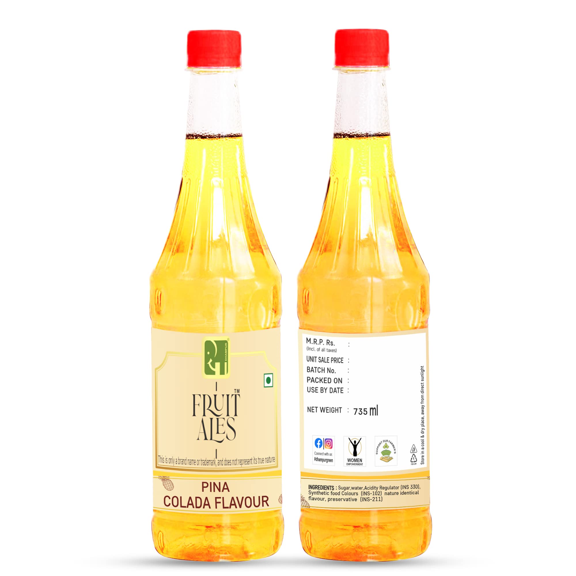 Literally translated as "strained pineapple Dhampur Green Pina Colada' is your tropical vacation in a glass; a refreshing sip to instantly transport you to the beach. With one sip of this creamy tart shaken-with-ice sweet and just what the doctor ordered' drink you'll be hooked to this irresistible beat-the-heat' gorgeous drink. If you want to have the milkshake smoothie version of your favourite tropical drink or relish the official beverage of Puerto Rico Dhampur Green Pina Colada syrup is just what you need! If want booze in it go ahead and add a cup and a half of dark or light rum or a combo of the two. This is your answer to an alcohol-free kid's party option or a sophisticated alcohol-free sidecar mocktail or a perfect afternoon refresher all the way to a spirit-party of adults. This makes the perfect treat to have on hand when you're craving something sweet throughout the week or for summer cookouts and dinner parties. Like rock music or candy this drink is perfect for what it is. Forget the sprites and the fantas and the tangs make pitchers full of easy tasty and super refreshing beverages with syrups from Dhampur Green become the official bartender at your house!Tip: If you want more depth in your drink Dhampur Green's Blackstrap Molasses adds just the right summer vibe you want to this pool-party drink.Made in India by a farmer-led enterprise the production work is done by local farmers especially women who take immense pride in creating products that add value to the lives of our consumers. Marginal farmers sell us their raw produce locally and no longer have to struggle with middlemen strict mandi bargains or distress sales. Support the Indian Farmer. Please note:If you are on heart or sugar medication do check with your doctor to make sure that this product doesn't interfere with your meds. Remember to have in moderation. Product packaging may be changed by company at any point in time without any notification. Product packing ma