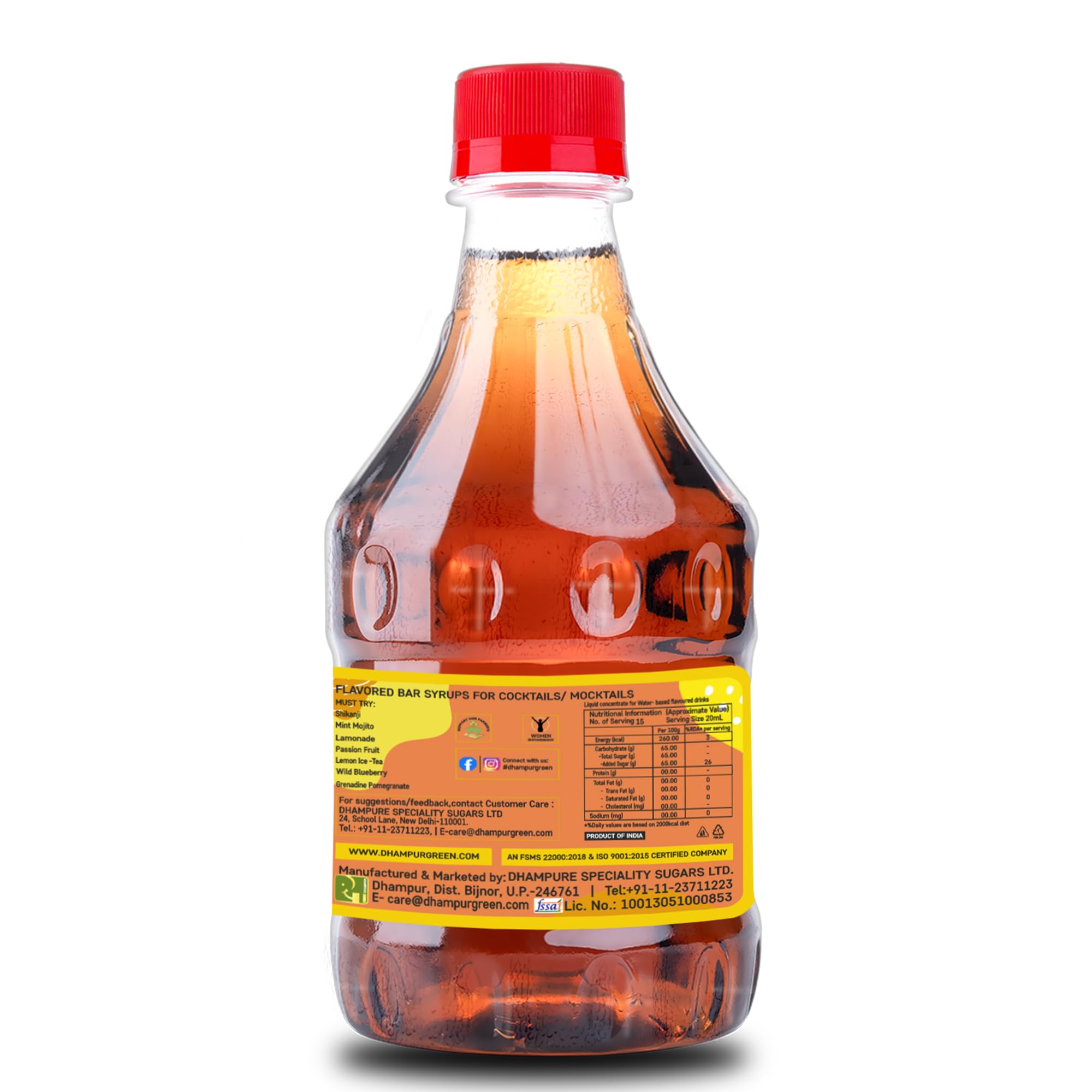 The Dhampur Green Fruit Beer syrup is bursting with a delicate fruit beer flavour distinctly mild sweetness and a hint of tartness. It brings the tones of ripe fruitiness to fragrant cocktails slushes sodas and dessert drinks.