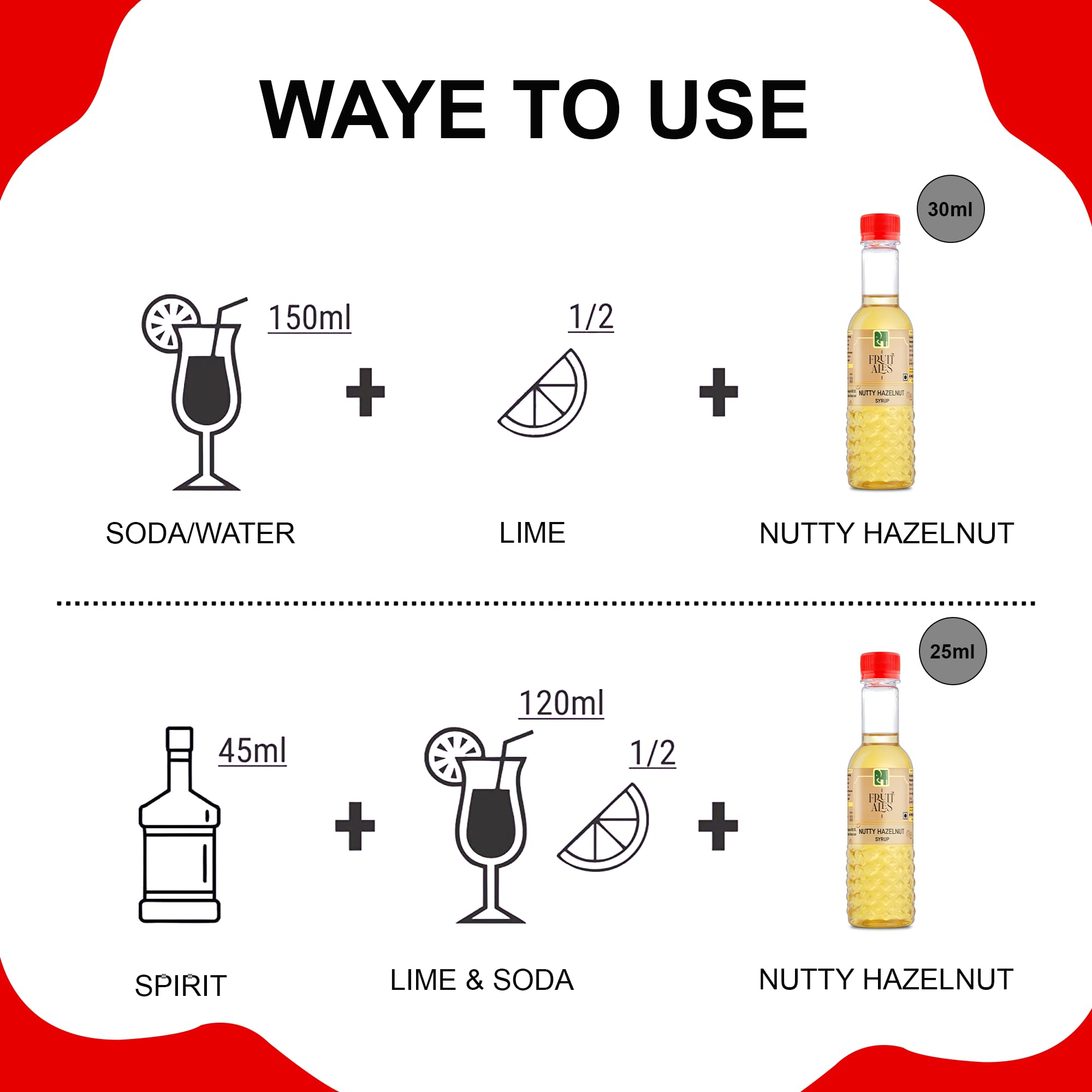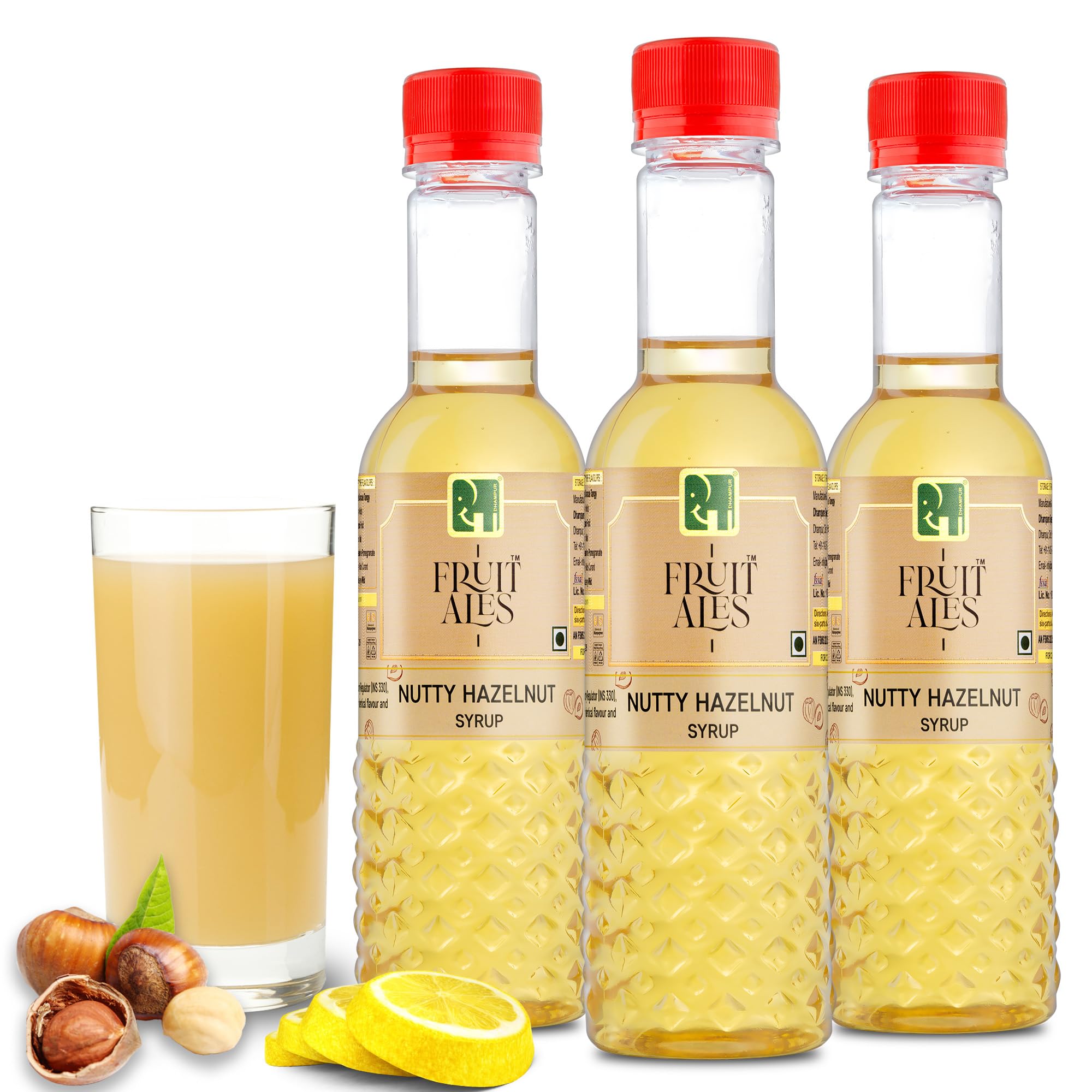 Dhampurgreen Nutty Hazelnut Mocktail Cocktail Vodka Rum Gin Mixer Syrup Makes 10-12 Drinks Each Bottle 900Ml (300Ml X 3) Pour Add Stir & Sip Syrup For Cocktails Mocktails/Non Alcoholic Beverage