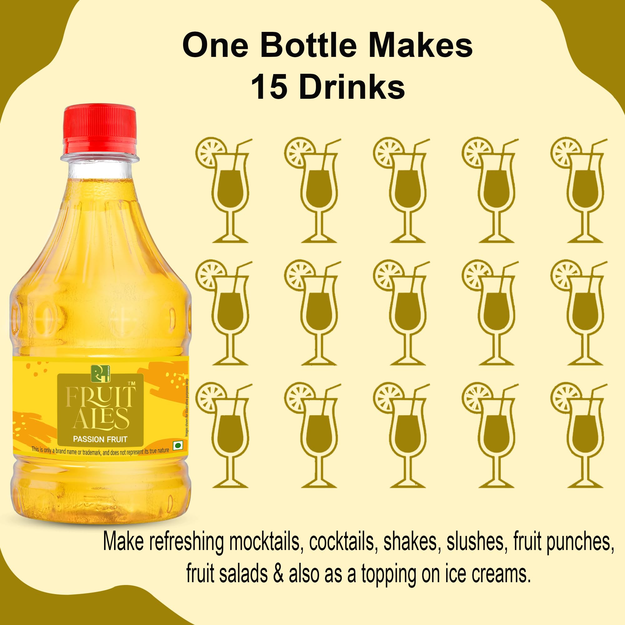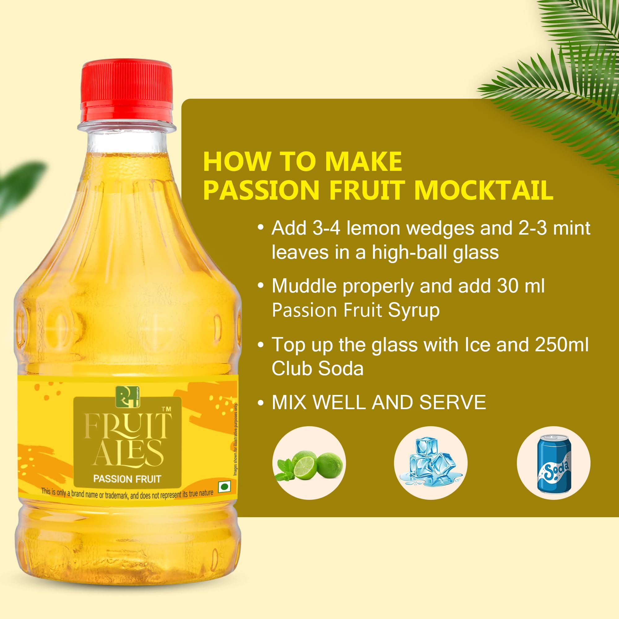 Dhampurgreen Passion Fruit Mocktail Cocktail Vodka Rum Gin Mixer Syrup Makes 10-12 Drinks Each Bottle 900Ml (300Ml X 3) Pour Add Stir & Sip Syrup For Cocktails Mocktails/Non Alcoholic Beverage