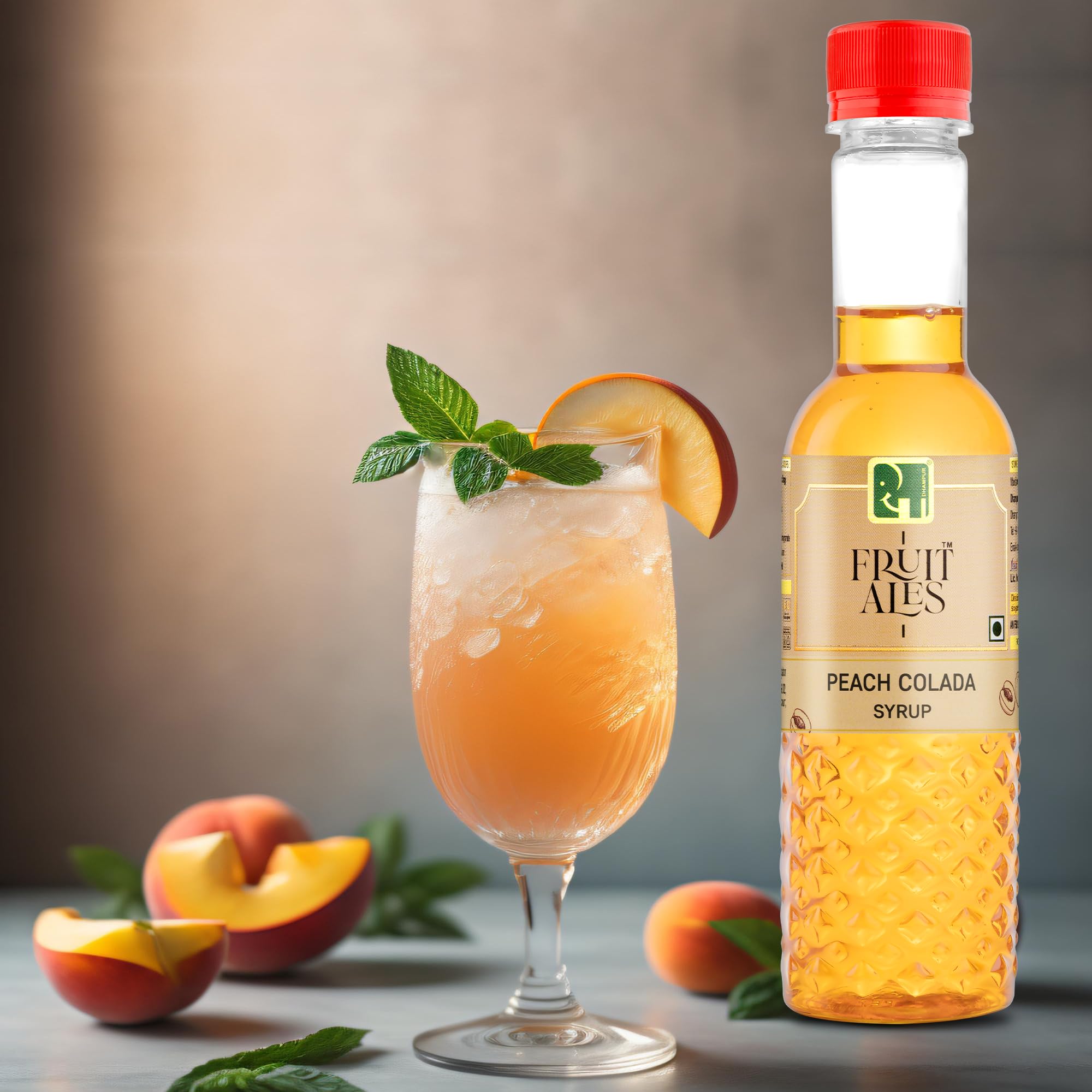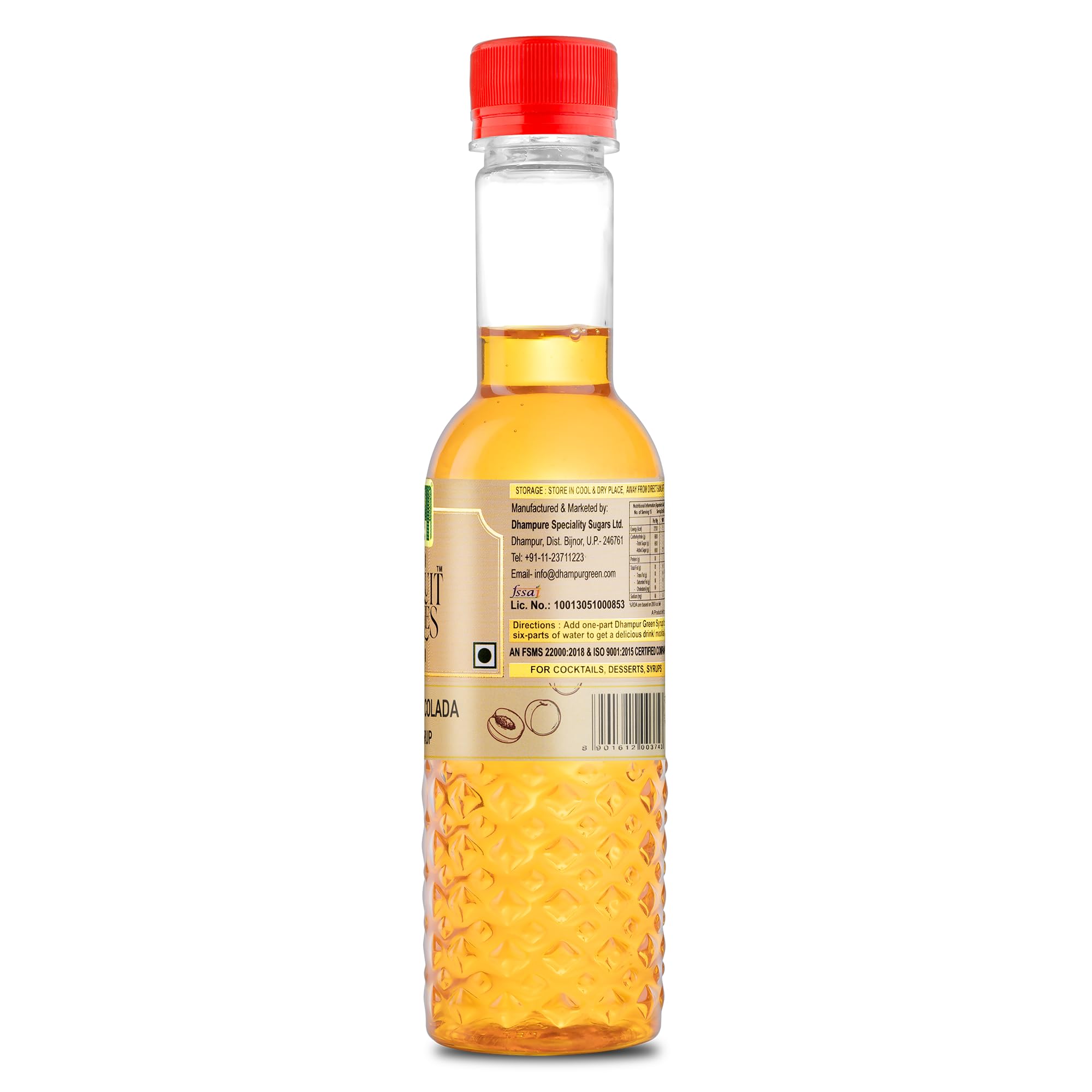 • Bursting with a delicate Peach flavour distinctly mild sweetness and a hint of tartness the Dhampur Green Peach Colada syrup brings the tones of ripe fruitiness to fragrant fruity cocktails.