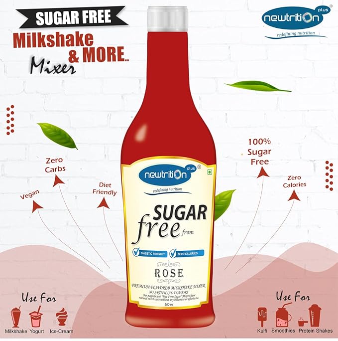 Newtrition Plus - Redefining Nutrition, Rose Flavored Milkshake Mixer / Syrup - Sugar Free, Zero Carbs, Vegan, 500ml