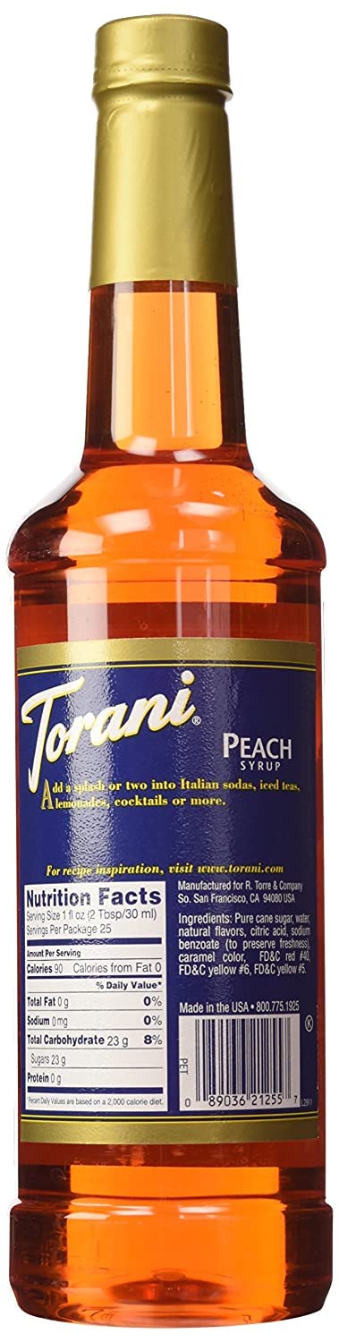 Torani Peach Flavored Syrup Bottle 750 ml