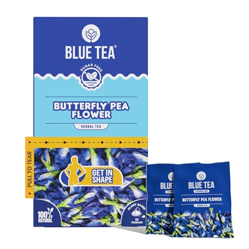 BLUE TEA - Butterfly Pea Flower Tea - 25 Tea Bags - Plant Based | Weight Management | Aparajita - Shankhpushpi | Caffeine Free - Herbal Tea - Flower Based | Single Tear Tea Box | Easy Pull Sachets