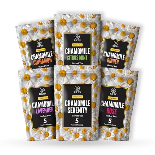 BLUE TEA - Chamomile Tea Sampler (6 Flavors, 30 Tea Bags - Plant Based) | Variety Pack | Flower Based - Caffeine Free - Herbal Tea - Non-GMO | Featured In Shark Tank | Assortment Box