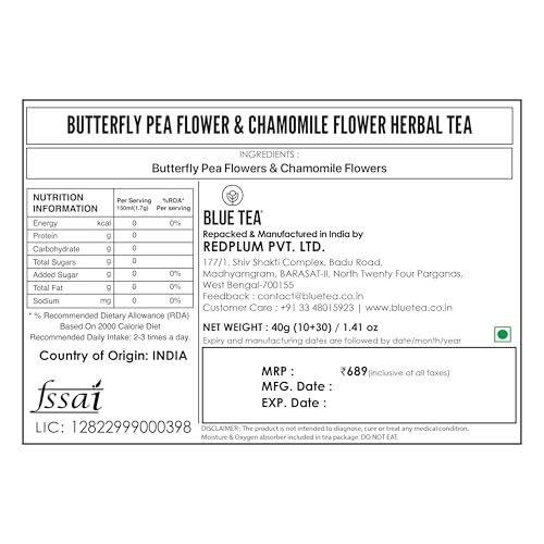 This product is a combo of Butterfly Pea Flower Tea and Chamomile flower Tea. It is a delicious treat for your health & taste. This tea can be a delightful stand-alone tea iced or hot or a nice addition to mocktails and other drinks for its fervent natural color. It is a rich source of antioxidants. These are dried in the sun on special bamboo mats to retain all-natural nutrients. It has been used for centuries for several health benefits. Bartenders from all over the world are using it in their cocktails.