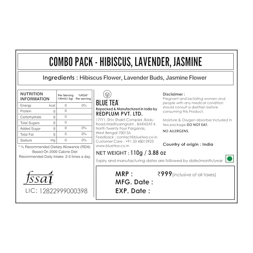 COMBO PACK- Hibiscus flower tea is famous for it's natural color & fresh tangy flavor Lavender flower tea famous for its mile aroma & Jasmine flower tea is good for oral health.