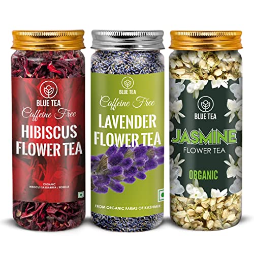 BLUE TEA - COMBO Pack Hibiscus 50g - Lavender 30g - Jasmine 30g - Herbal Tea | Caffeine Free - Non GMO - Food Grade Pet Jar Pack